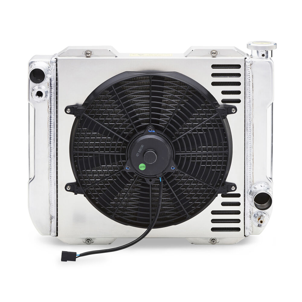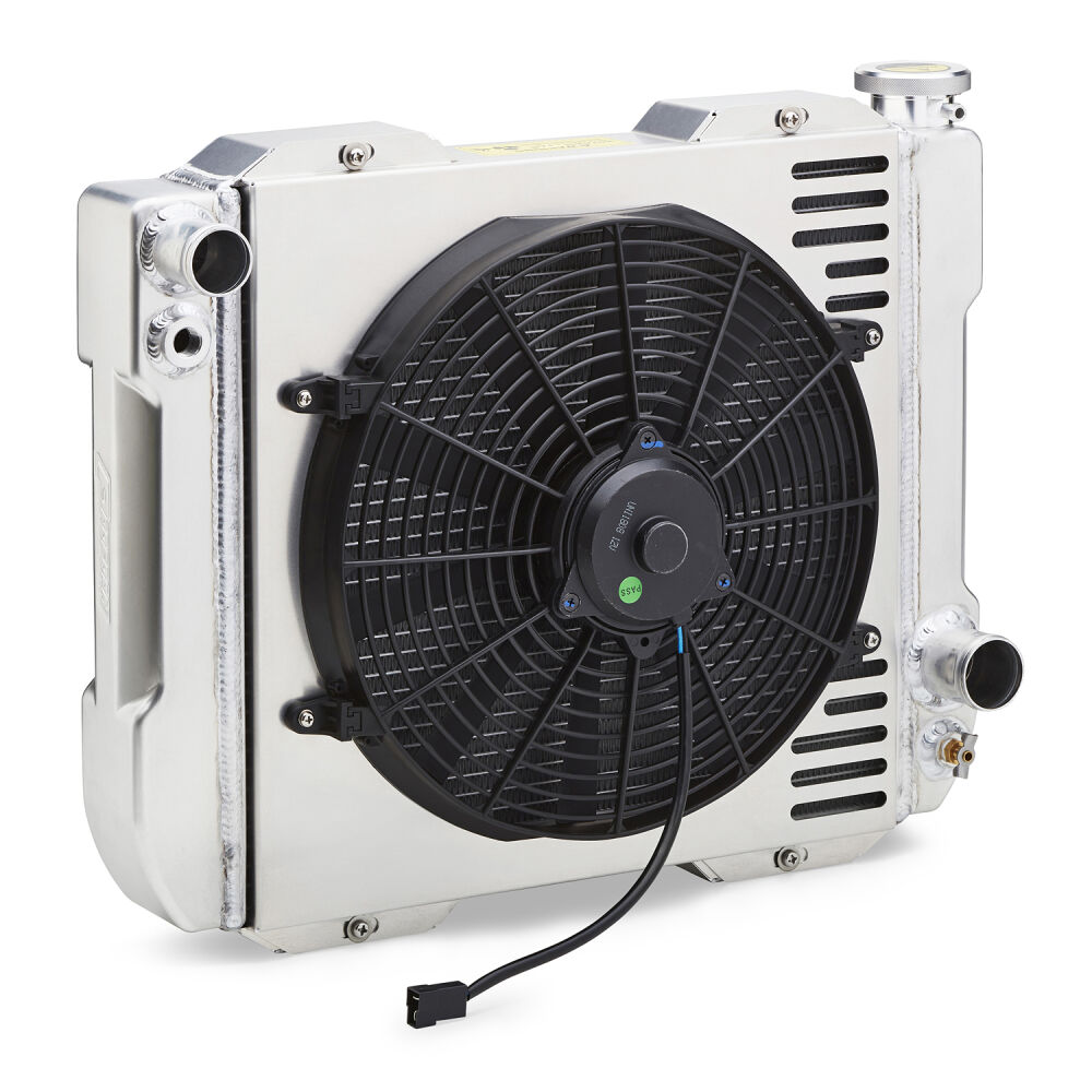 Easy 1-2-3 Series Radiators Systems are just what they sound like! Proform will build the whole system with shroud and fan so it s ready to go right out of the box! This is the best and easiest way to get a high-quality cooling system that doesn t have the DIY look, but rather a sleek show car look. Just thread the thermostat probe into the tank, wire up the adjustable controller, and you ll be driving down the street nice and cool in no time at all. This systems includes a single pass all-aluminum radiator, low profile shroud, 12 volt electric fan, and an adjustable thermostat controller.