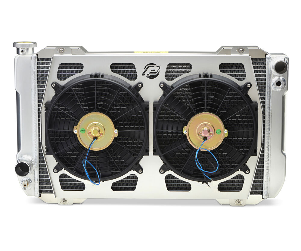 Easy 1-2-3 Series Radiators Systems are just what they sound like! Proform will build the whole system with bracket and fans so it s ready to go right out of the box! This is the best and easiest way to get a high-quality cooling system that doesn t have the DIY look, but rather a sleek show car look. Just thread the thermostat probe into the tank, wire up the adjustable controller, and you ll be driving down the street nice and cool in no time at all. This system includes a single-pass, all-aluminum radiator; low-profile fan bracket; two 120-volt electric fans, and an adjustable thermostat controller.