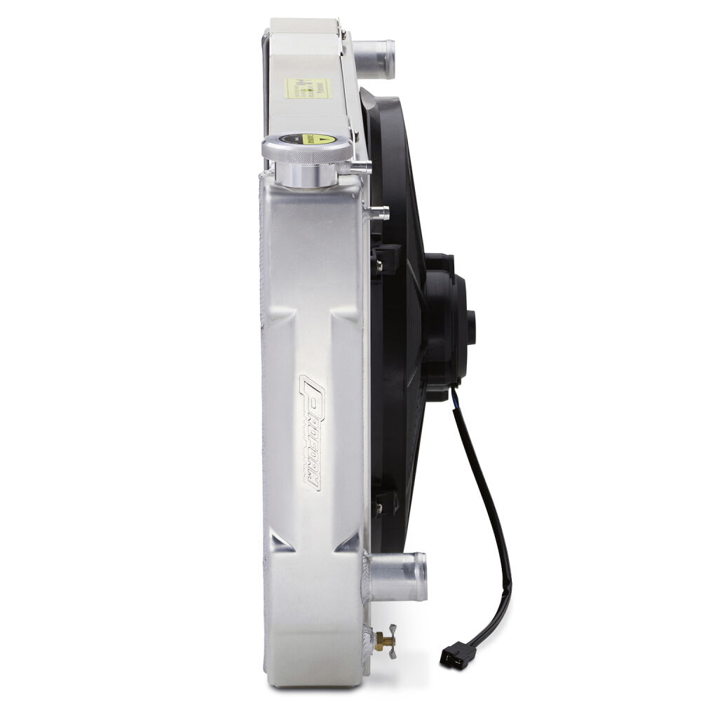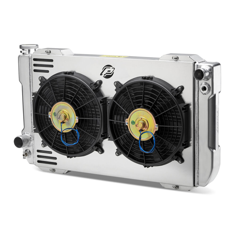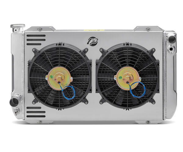 Easy 1-2-3 Series Radiators Systems are just what they sound like! Proform will build the whole system with shroud and fans so it s ready to go right out of the box! This is the best and easiest way to get a high-quality cooling system that doesn t have the DIY look, but rather a sleek show car look. Just thread the thermostat probe into the tank, wire up the adjustable controller, and you ll be driving down the street nice and cool in no time at all. This systems includes a single pass all-aluminum radiator, low profile fan shroud, two 12 volt electric fans, and an adjustable thermostat controller.