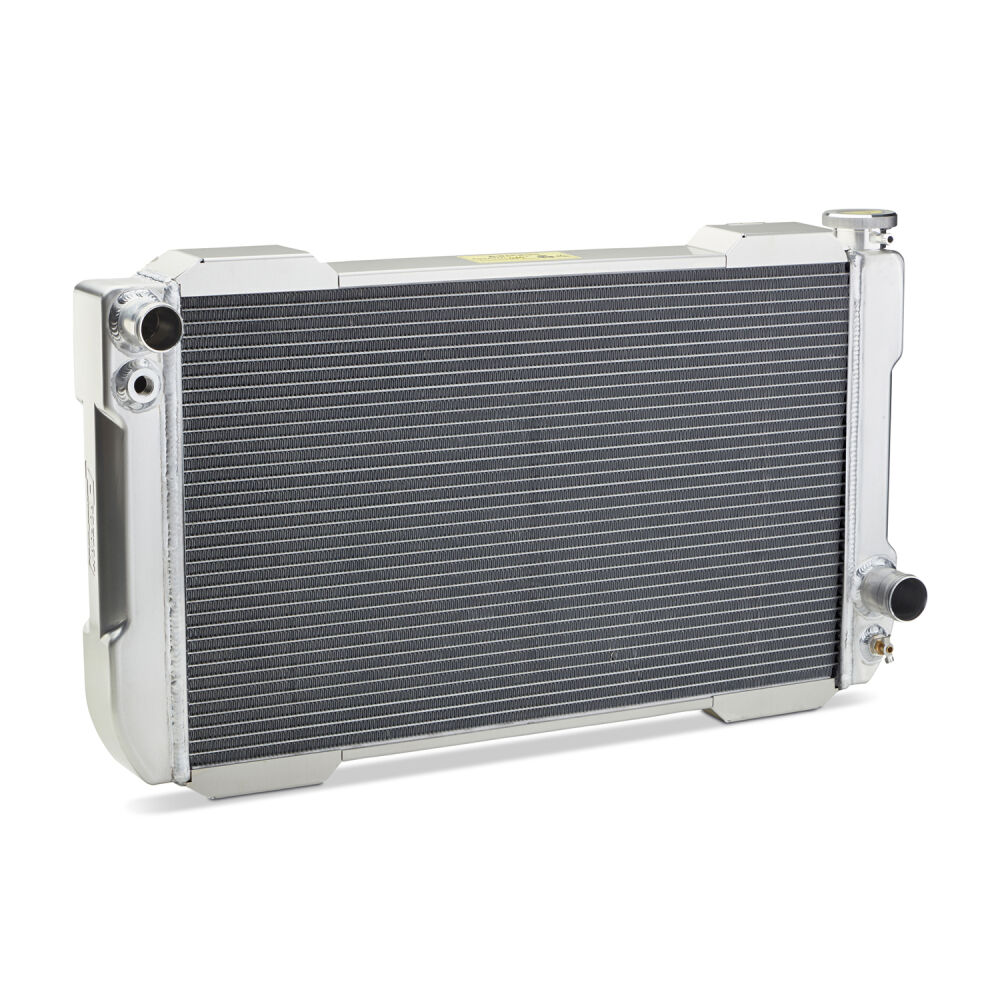 PROFORM s new modular 1-2-3 Series Radiators and Accessories fit together just like they should, nice and easy! Start with this versatile 26 wide core Stage 1 Radiator, part no. 126G000 as the foundation for your cooling system. These aren t just your ordinary single pass radiators, they offer beautifully tig-welded tanks, and a slick profile thanks to PROFORM s unique Four-Corner Design. The Four-Corner Design makes it easy to attach an exact fit Stage 2 Single Fan Shroud, Dual Fan Shroud or Dual Fan Bracket, part nos. 1261S00(single fan shroud), 1262S00(dual fan shroud), or 1262B00(dual fan bracket), because the mounting holes line up, making installation a breeze with the included hardware. For the ultimate professional look at DIY costs, take a 1-2-3 Series Stage 3 Fan or Fans, part nos. 67016 or 67027 for single fan setups, or 67012 or 67013 for dual fans setups; and mount them up to the pre-threaded holes in the shroud or bracket; then top it off with an adjustable fan controller to make life easy. It s easy as 1-2-3! This is a really nice cooling system that's ready for the show, streets, or strip! This Stage 1 Radiator has dual one-inch tubes, single pass, with optimized louver design to maximize cooling, and deep draw headers for an extra solid tube/header seal. Billet aluminum filler neck with overflow tube, and a billet aluminum 16 psi cap are included. No epoxy or anything else like that just tight tolerances all around. Building your custom cooling system is easy!