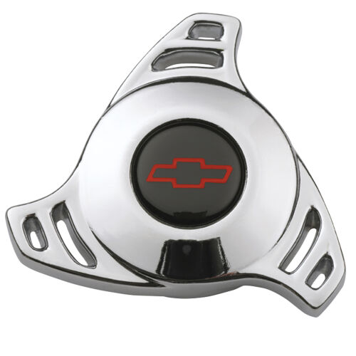 Chrome; Red Chevy Bowtie logo; Large tri-wing style