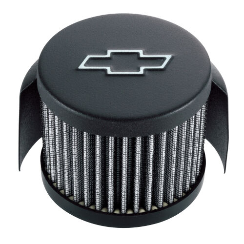 These popular push-in filter air breathers, with the raised Bowtie Emblem stamped prominently in the top, are offered in two styles: with the heat-shield hood and without. 3in diameter. Fits 1.22in holes