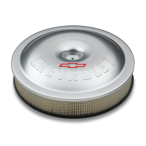 The Chevrolet Super-Light Racing Air Cleaner is made of aircraft aluminum, with the famous Bowtie and Chevrolet logos, with a clear annodized finish. The super-deep aluminum base gives you maximum clearance. The weight-saving high-performance air cleaner kit blends traditional OEM appearance profiles with optimized air-flow dynamics to achieve checkered-flag results. Supplied with necessary mounting hardware and center nuts as shown.
