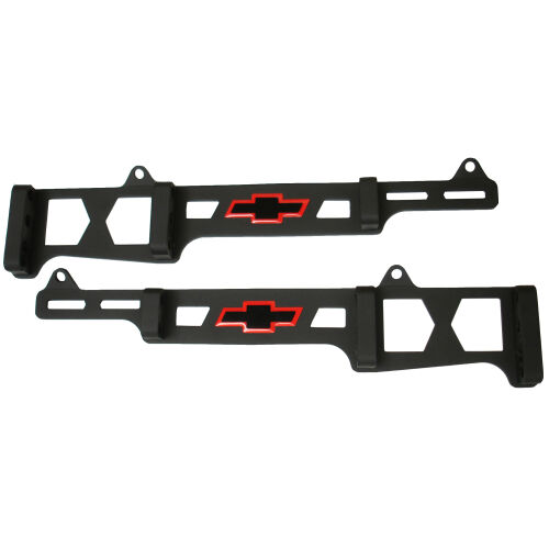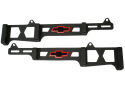 This spark plug wire loom set is a linear style made for 7mm-8mm wires. They mount to the engine valve covers and are designed to fit 1959 to 1986 Small Block Chevy engines. Features a great looking, durable black crinkle finish along with a red and black Chevrolet "Bowtie" logo. Made from high-quality steel material. Using the valve cover mounting bolts, these handsome Chevrolet looms are positioned along the valve cover to hold the wires in a neat parallel arrangement. The epoxy-coated "Bowtie" emblem is centrally located for maximum visibility. The wire holders are opened and closed individually with a patented nylon wedge to permit the chrome tops to have a smooth surface free of screw holes. Tech Note: Before purchasing, check exhaust manifold for correct usage for clearance reasons, the manifold must not be much higher than the valve cover mounting flanges. This is an officially licensed Chevrolet Performance Parts product. Sold as one pair. Backed by a limited 30 day factory warranty.