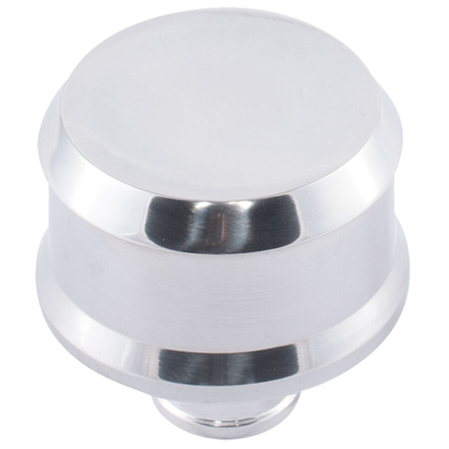 No more stamped steel breather caps for aluminum valve covers! Complete your engine dress-up look with a breather cap that actually matches your look! These new Slant-Edge aluminum push-in breather caps are available in five different finishes, and with just about every Bowtie emblem configuration imaginable: raised and milled, recessed with inlaid paint, the unique recessed/raised blackfield, and even no emblem at all. The vivid 3D Bowtie emblem gives this 2.5 inch diameter breather cap a bold clean look that