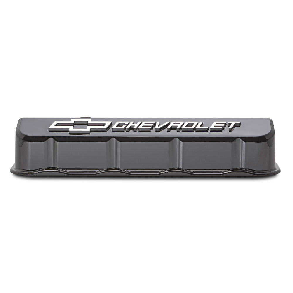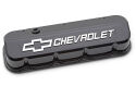 Now Available! It's time to give your Big-Block Chevy a long overdue engine makeover. The new Slant-Edge look for big-block is the perfect way to customize your engine so it turns heads when you pop the hood at your local car show! With 13 different finish and Bowtie emblem combinations there's something for everyone, and the best part is that most these valve covers can be complemented with a matching Slant-Edge air cleaner, and breather caps to finish off the look in a perfectly coordinated way. There are three emblems to choose from: raised with a CNC machined finish, recessed and hand painted, blackfield recessed and raised, and lastly a new redfield recessed and raised. These premium die-cast aluminum valve covers have been optimized for maximum internal clearance, and feature innovative die-casting on the intake side so you don't have to struggle with bolts in tight places. Each pair of valve cover includes baffles, rubber grommets, and 6 special length mounting bolts for use on the intake side. Patent Pending.