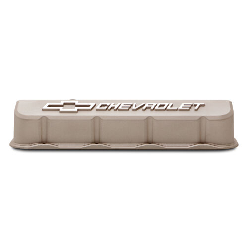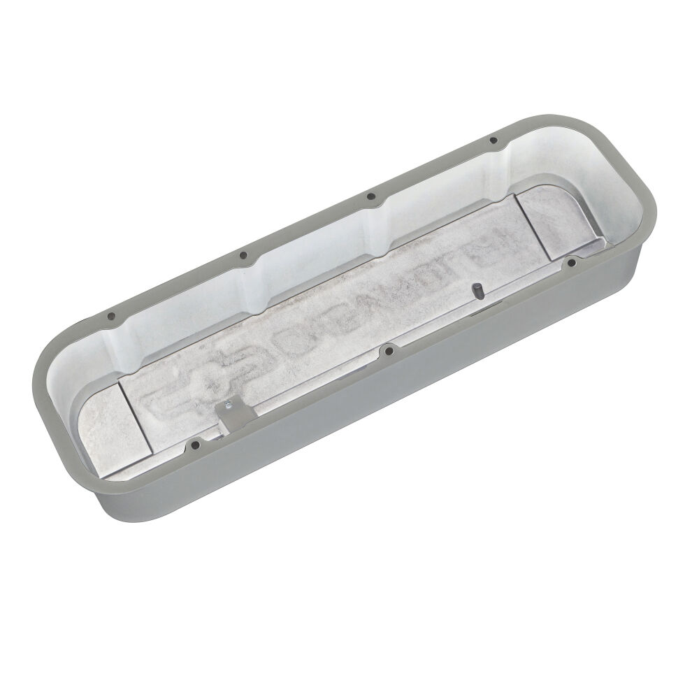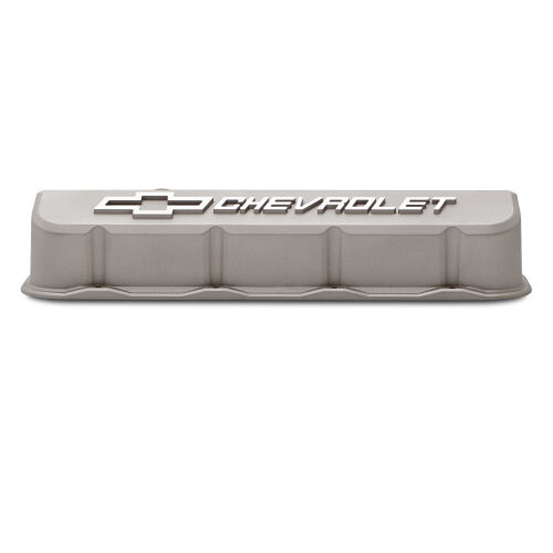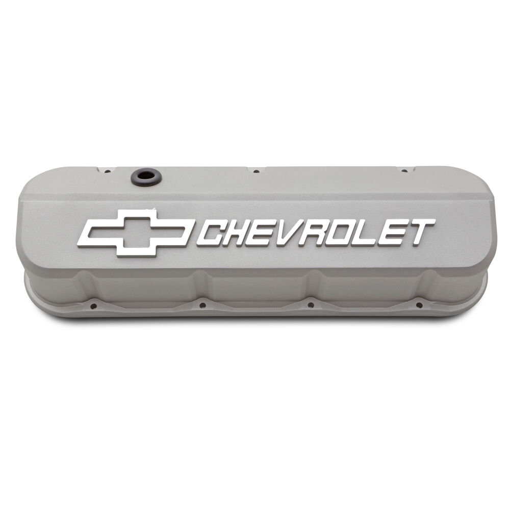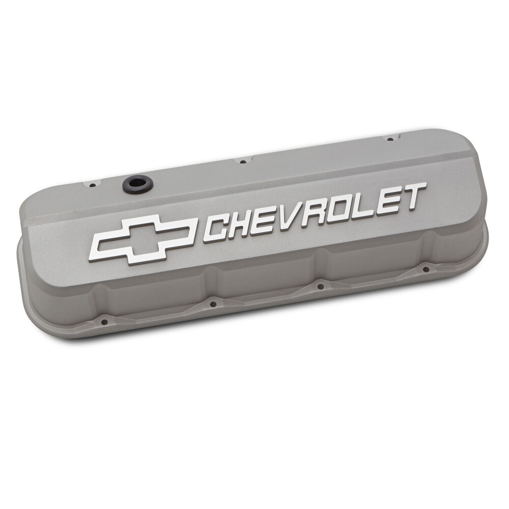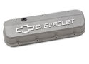 Engine Valve Covers; Tall; Die-Cast; BB Chevy; Cast Gray with Raised Chevy Logo | #141-872