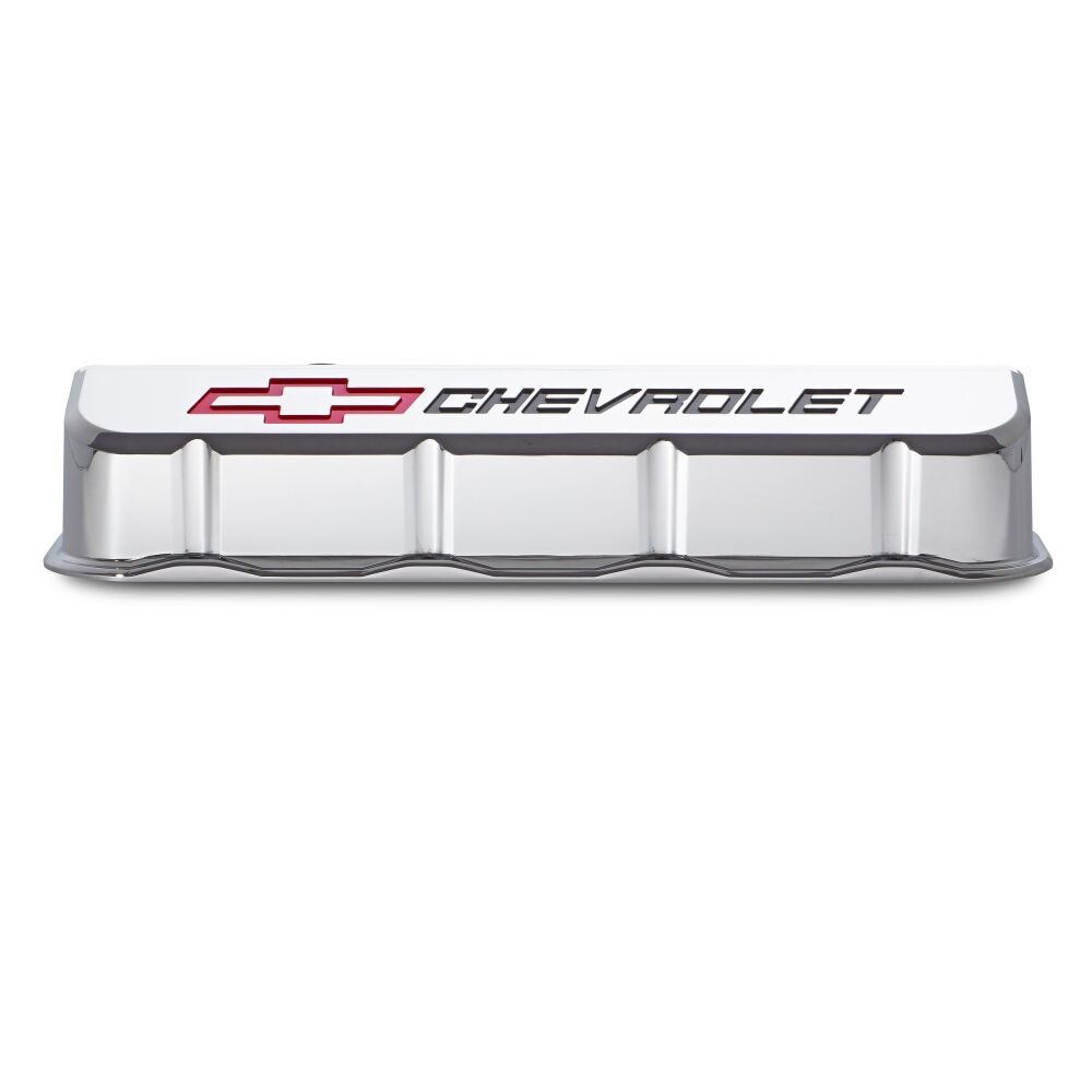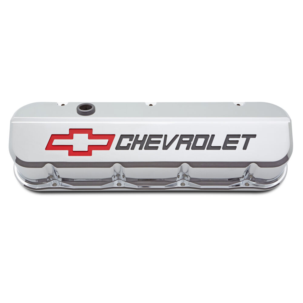 Now Available! It's time to give your Big-Block Chevy a long overdue engine makeover. The new Slant-Edge look for big-block is the perfect way to customize your engine so it turns heads when you pop the hood at your local car show! With 13 different finish and Bowtie emblem combinations there's something for everyone, and the best part is that most these valve covers can be complemented with a matching Slant-Edge air cleaner, and breather caps to finish off the look in a perfectly coordinated way. There are three emblems to choose from: raised with a CNC machined finish, recessed and hand painted, blackfield recessed and raised, and lastly a new redfield recessed and raised. These premium die-cast aluminum valve covers have been optimized for maximum internal clearance, and feature innovative die-casting on the intake side so you don't have to struggle with bolts in tight places. Each pair of valve cover includes baffles, rubber grommets, and 6 special length mounting bolts for use on the intake side. Patent Pending.