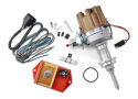These complete high performance distributor kits will convert your old point-type ignition to new electronic ignition. Each kit includes distributor with high performance advance curve, along with an electronic control unit box, wiring harness, ballast resistor, and detailed installation instructions. Made entirely of 100 percent NEW, not rebuilt components. Each high performance, factory set distributor, has a retro-style Mopar Emblem prominently displayed beneath the tan female socket type cap. Fits Chrysler 361-383-400 Big Block B and RB Engines. Sold as one kit.