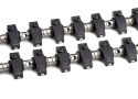 These beautiful new aluminum shaft-mount roller rockers are perfect for your big block (B/RB) engine. The bronze bushings provide a friction free environment for the rocker to pivot on. The system is designed so the oil comes up through the shaft and into the rocker underneath the bushing. Channels and holes in the bushing allow for the oil to lubricate the pivot area.