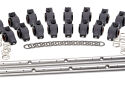 The race-proven roller tip not only unleashes horsepower, it also lengthens valve train component life and reduces wear and tear on valve stem tips. Precision machined to insure consistency and ratio accuracy. The adjustable push rod tips allow for precise lash adjusting. 16 aluminum roller rockers, hardened shafts, and spacer hardware included. Please Note, mounting hardware is not included. The kit is designed to use your stock bolts and tabs to attach the shaft to your cylinder head.