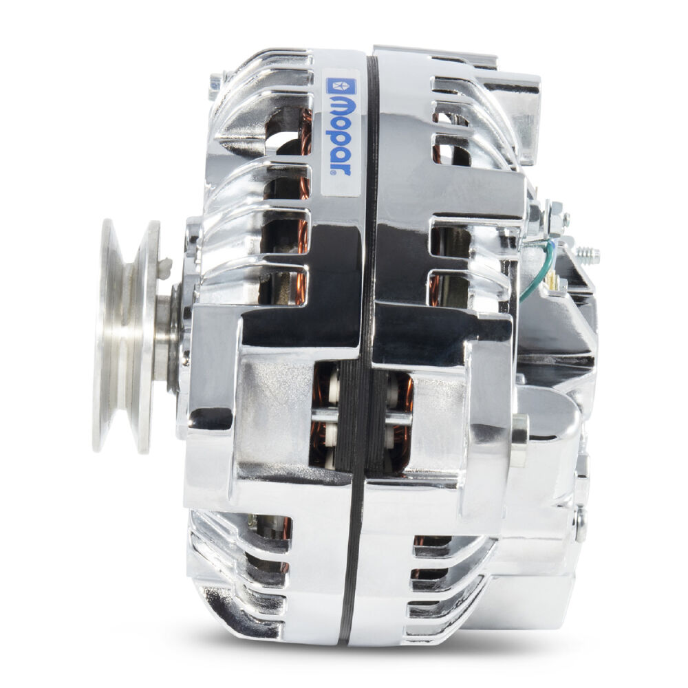 Time to update the technology in your vintage Chrysler/MOPAR® muscle car. This 100% New alternator has everything you need: more amps (110), and 1-wire technology. When most alternators look the same on the outside, choose the one that can back it up on the inside, with an individual test result in each box. Not compatible with 3-wire setups. Sold individually.