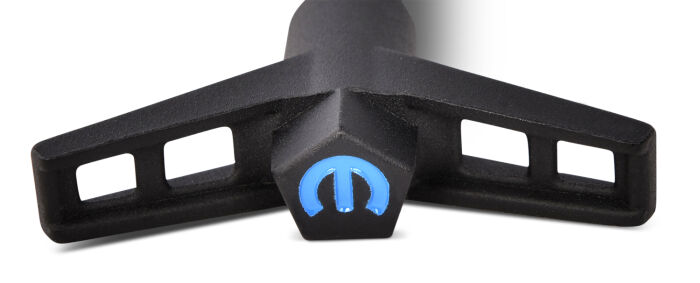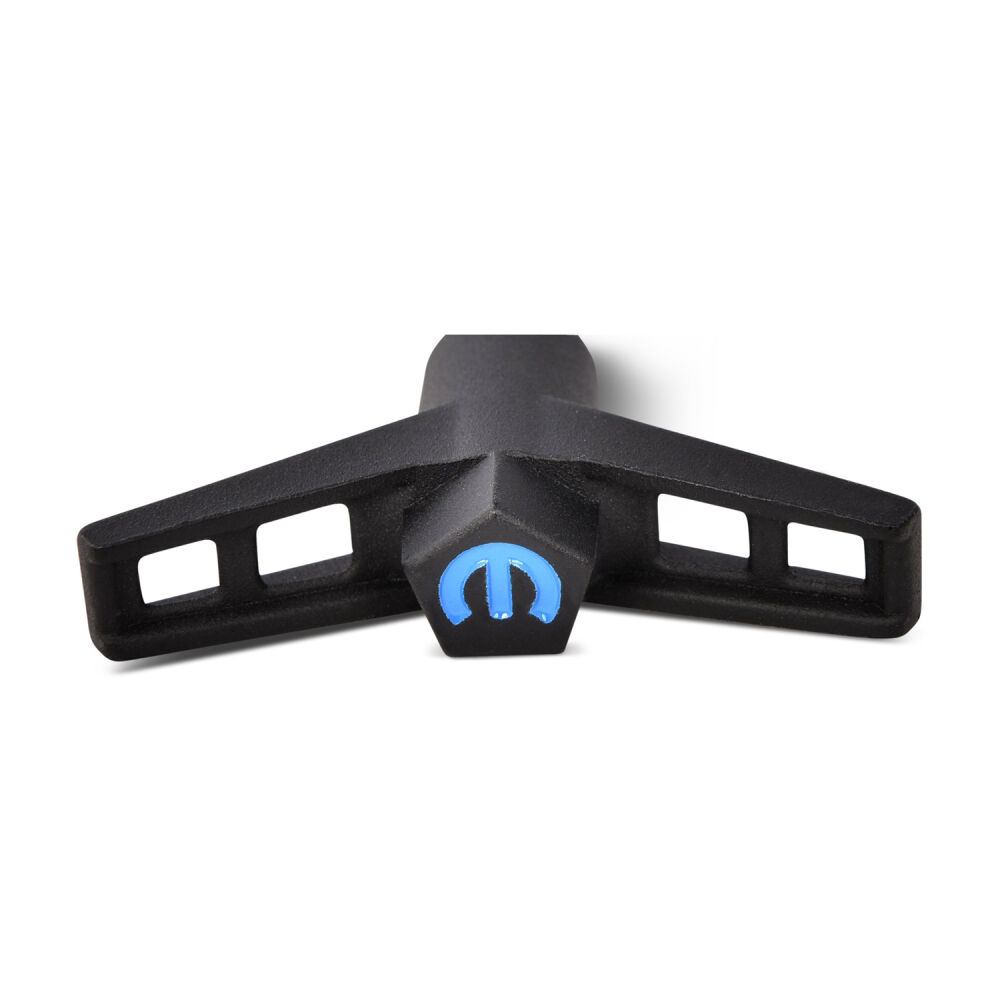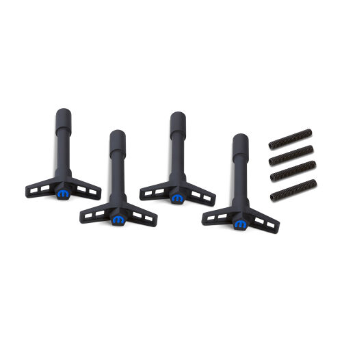 These premium black crinkle wing nuts prominently display the Mopar "M" Emblem in signature blue inlaid paint. The head of each wing nut also has been modified into a pentagon shape that goes back to the early days of the Chrysler Pentastar. These small design cues set these valve cover wing nuts apart from the competition. The lower ends of the wing nut shafts are manufactured with wide shoulders for broader load distribution, and each wing nut is supplied with a separate stud which permits precise gasket positioning on the head prior to mounting the valve covers. Fits Chrysler LA, B, and RB Engines. 1/4in x 20 threaded studs are included. 4 per package.