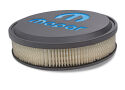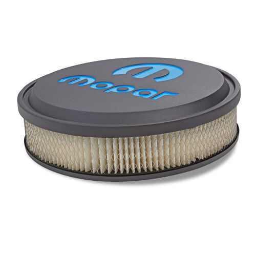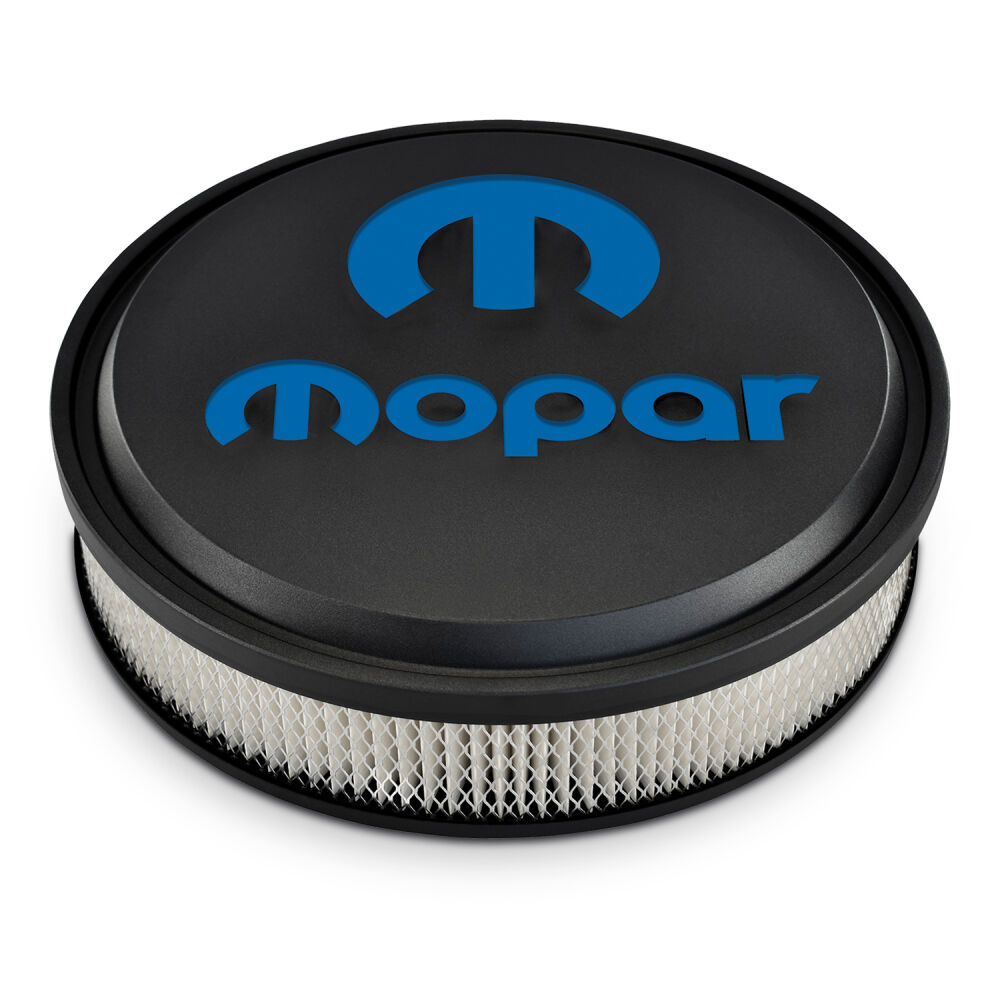 Now Available! Slant-Edge Air Cleaners are the perfect way to complete your dress-up look in premium Slant-Edge style. If you've got black valve covers, this thing will set your engine bay OFF like no other air cleaner. The over-sized MOPAR emblem with MOPAR blue inlaid paint is next level. They are supplied with genuine 3" GM air filter elements (GM P/N 6421746, AC Delco P/N A212CW) for maximum airflow. Each kit is supplied with necessary mounting hardware. Technical Note: After installing a new air cleaner, always lower the hood slowly to confirm sufficient clearance visually. Minimum clearance of 3-3/4" is required from the top of the carburetor gasket area to the underside of the hood. The air cleaner base is recessed for a low profile appearance. Patented Design.