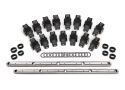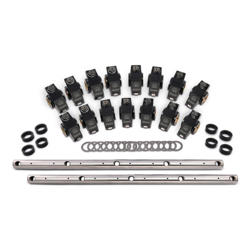 The race-proven roller tip not only unleashes horsepower, it also lengthens valve train component life and reduces wear and tear on valve stem tips. Precision machined to insure consistency and ratio accuracy. The adjustable push rod tips allow for precise lash adjusting. 16 aluminum roller rockers, hardened shafts, and spacer hardware included. Please Note, mounting hardware is not included. The kit is designed to use your stock bolts and tabs to attach the shaft to your cylinder head.