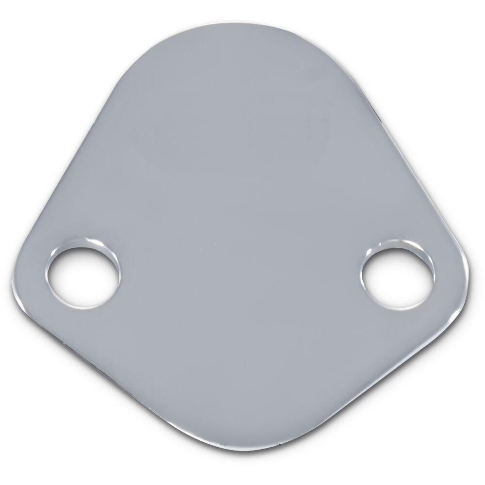 Premium Chrome Fuel Block-Off Plate. Fits Big Block Chevy & Most V6 Engines, as well as Ford 289-302 & Chrysler 273-440 Engines.