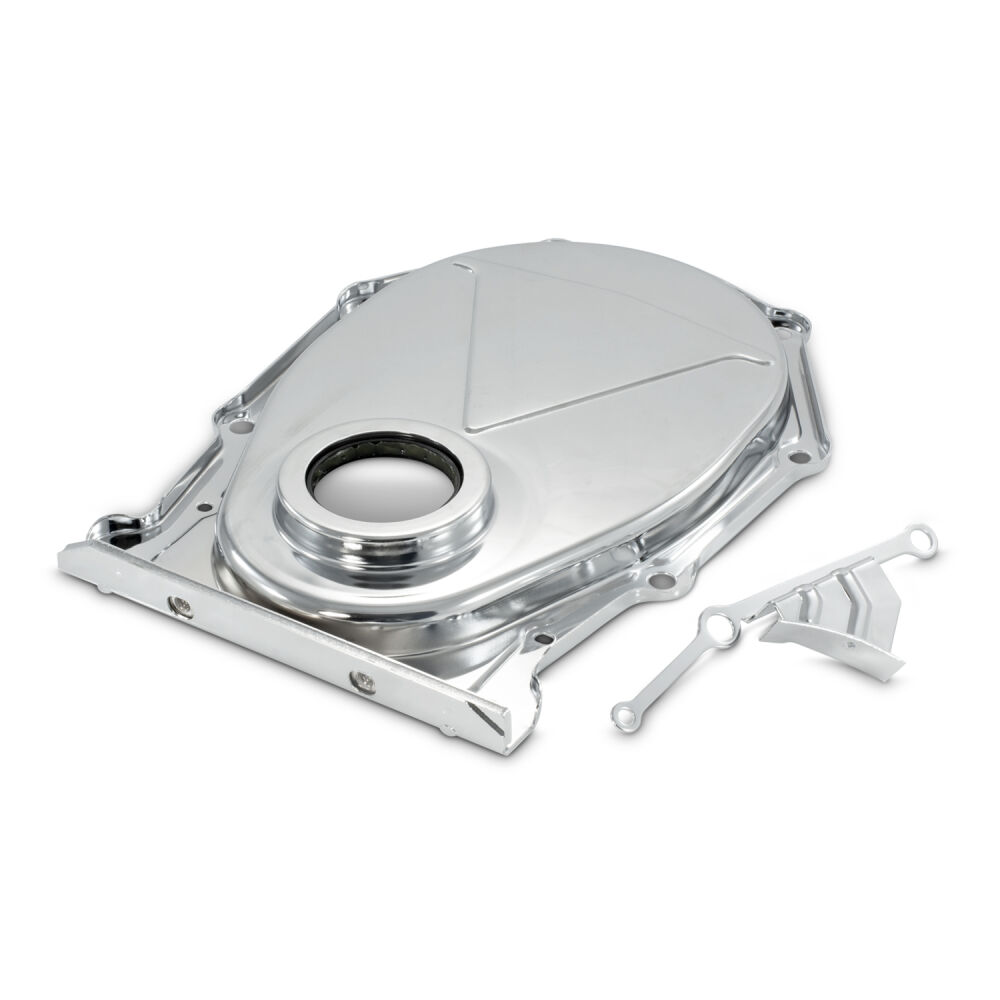 Give your Big Block MOPAR some love with this factory replacement steel timing chain cover. Bright chrome finish! Matching chrome bolt-on timing tab included.