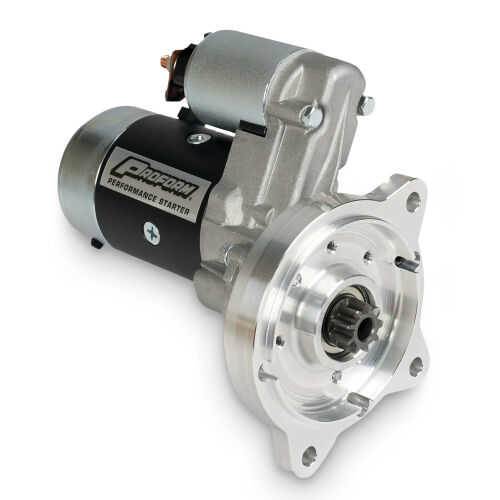 The Ford Automatic Transmission, High-torque, gear-reduction design, Starter has a 12V, 2.2KW motor and a torque ratio of 15:1. This PROFORM Starter is 100% NEW, not rebuilt with remanufactured parts! Offset design results in more clearance between the oil pan and the starter, and can be rotated for additional chassis clearance. The high-torque, high-output motor spins the engine over faster than stock starters, delivering 40-50% more cranking power. Includes shims to set pinion-gear engagement (when necessary). Fits Ford Small and Big Block V8, 221-351W and 460 engines.
