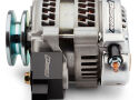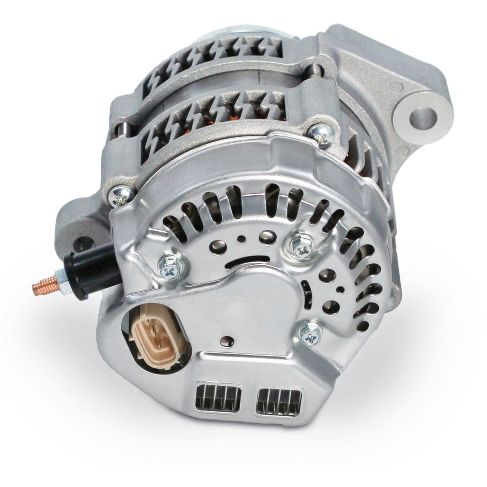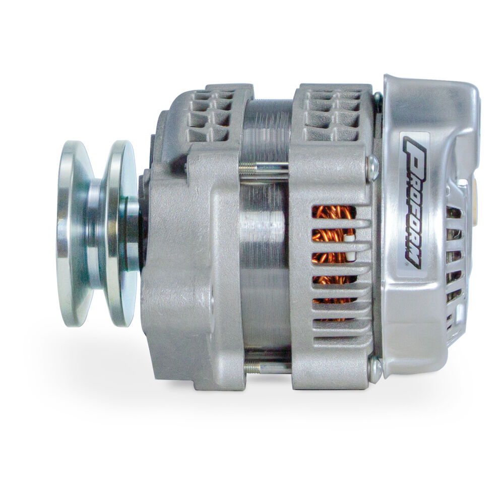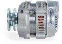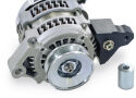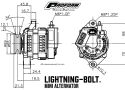 NOW AVAILABLE! It took a technological breakthrough to develop an alternator that is nearly 40% lighter than a 10SI that kicks out as many amps! The physics defying Lightning Bolt design generates 80+ amps at idle, and over 100 amps at the top end…all this from a 7 lb, 98mm stator size alternator. It is light enough for the drag strip, but puts out the kind of amps that are needed on the street. On top of that, the Lightning-Bolt has its own unique aluminum housing that certainly will spin a head or two. Whether it’s fashion or function you’re after, the Lightning Bolt delivers both.