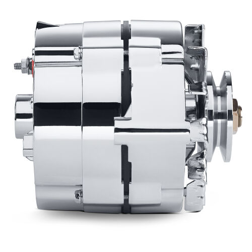 PROFORM's 80 AMP Alternator is a 1-wire, GM 10 SI Case Style complete with Internal Regulator. The External Fan Style Alternator features a Machined Pulley, Chrome Finish and is NOT made with re-man componets. Each alternator is produced by highly specialized machines, assembled by highly trained personnel using dedicated jigs and equipment - 100% New. Sold individually.