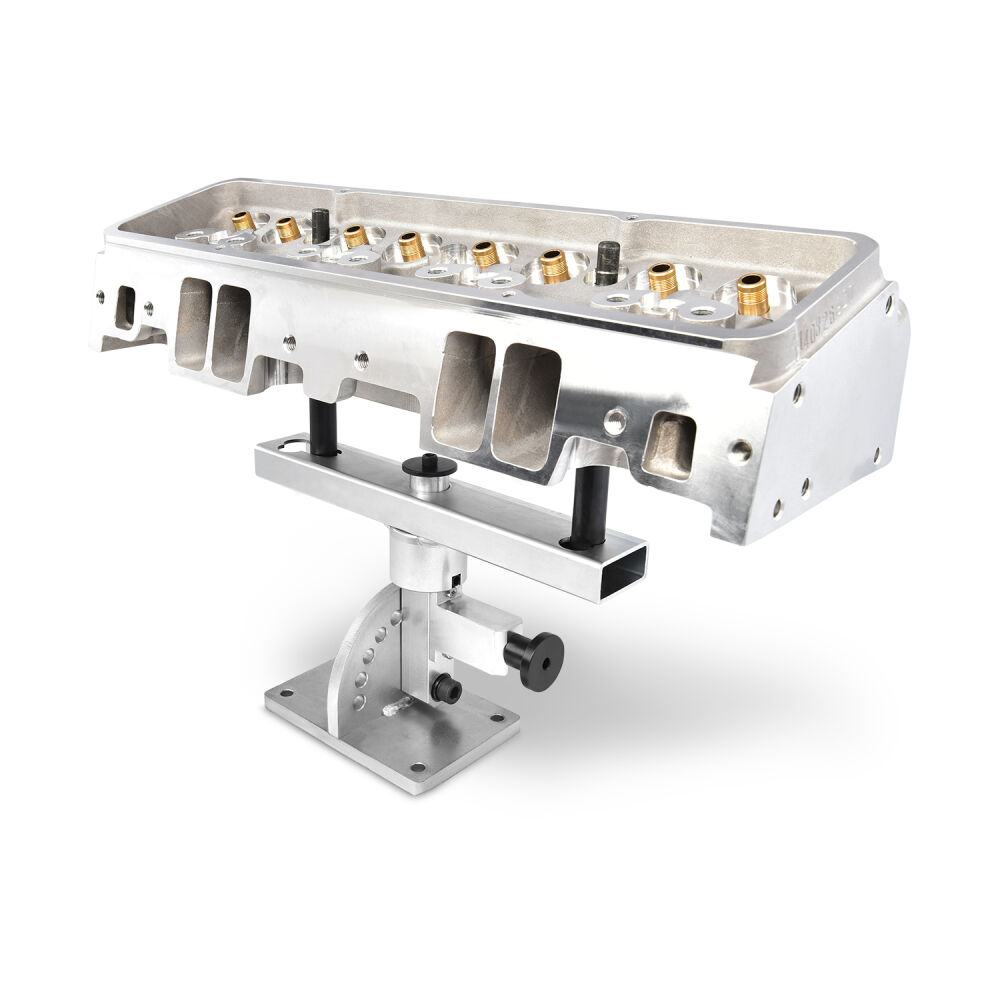 Discontinued. Our heavy-duty cylinder head work stand is a great way to hold your cylinder heads above your workbench while working on them. The adjustable arms allow you to set the proper height and maintain stability.