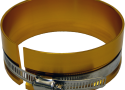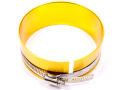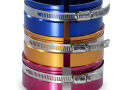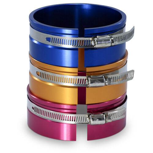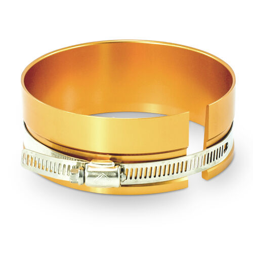Putting the connecting rod through first, simply place the piston (with rings) into the tapered end of the ring compressor. Tighten the compressor snugly around the base of the piston. Then lay the compressor flat on the engine cylinder bore.