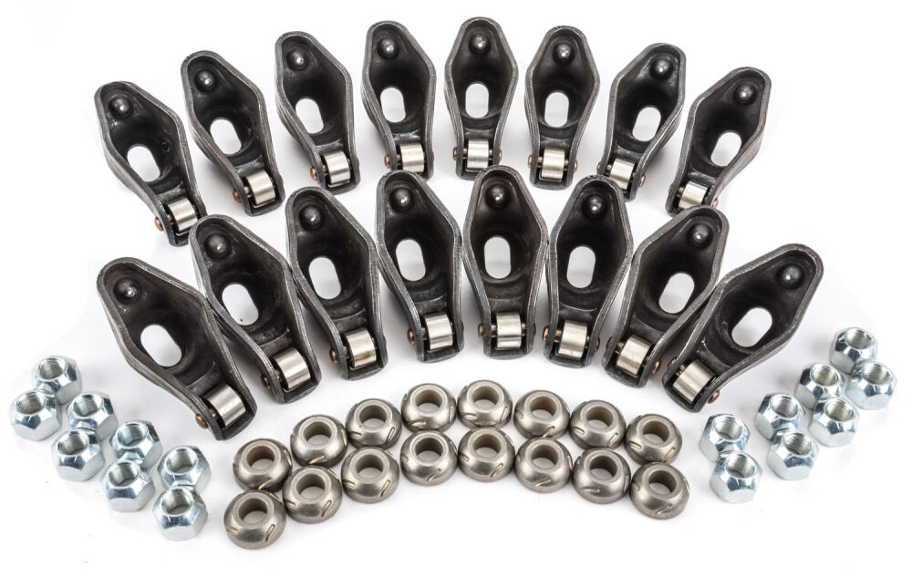 A super affordable way to reduce internal valve train friction and valve stem wear. Extra long slot eliminates rocker to stud interference when using high lift cams. 16 rockers, anti-gall grooved balls and nuts per package.