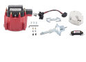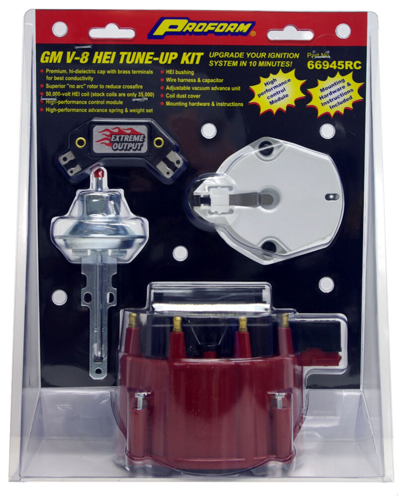 This engine distributor tune-up kit includes a red distributor cap. Designed to fit all 1973 through 1990 V8 engines with a GM HEI distributor using an internal coil. This kit includes cap coil, rotor, coil cover, control module, adjustable vacuum advance canister bushing, wire harness, curve kit and all hardware. Sold as one complete kit. Backed by a limited 30 day factory warranty.