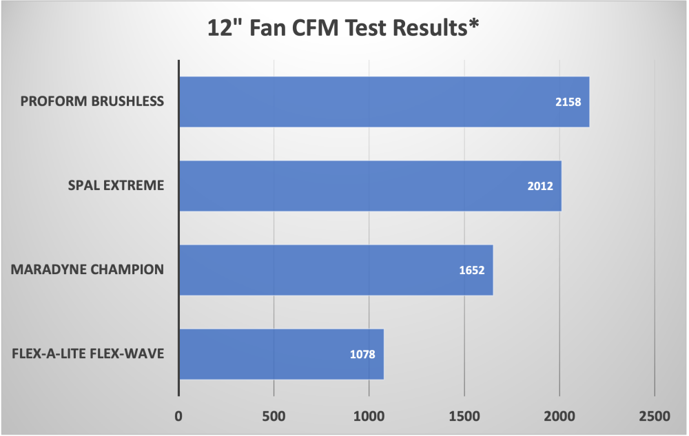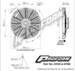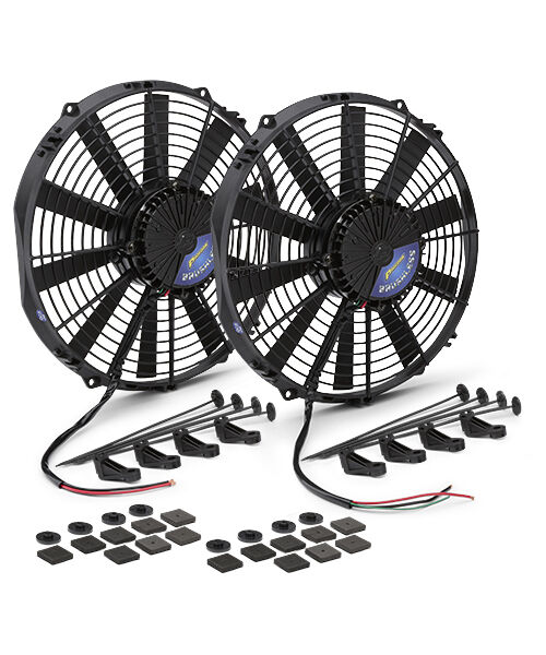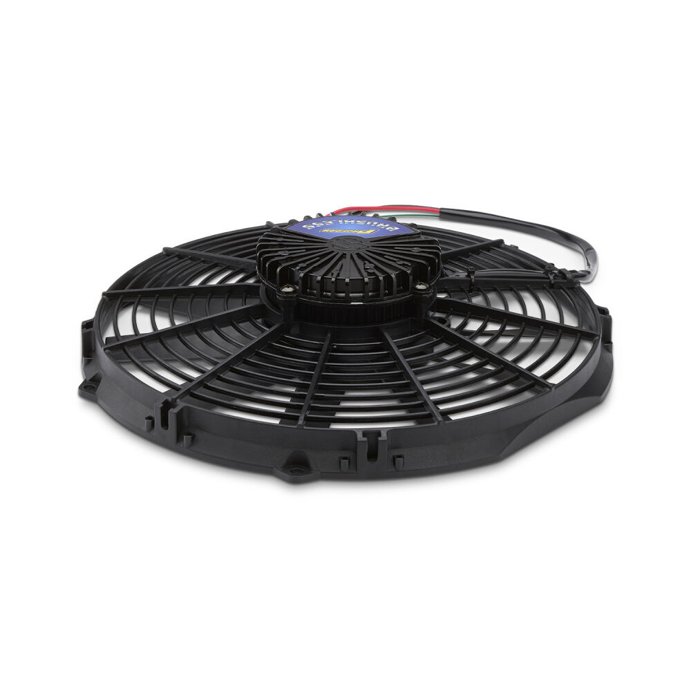 NOW AVAILABLE! PROFORM's new brushless motor electric cooling fans deliver more CFM than the competition for MAXIMUM COOLING. These Brushless fans are lightweight, low-profile, no amp spikes, and create cooling unlike anything out there. The best part is, it's totally universal and designed for 12 volt systems. No fancy engine specific controller required, just wire up the (+) and (-), and you're ready to good. Also compatible with aftermarket ECU controllers, and PROFORM's variable speed controller (p/n 69597). Soft start ramp up prevents amp spikes. This is strictly a puller fan and is not reversible.