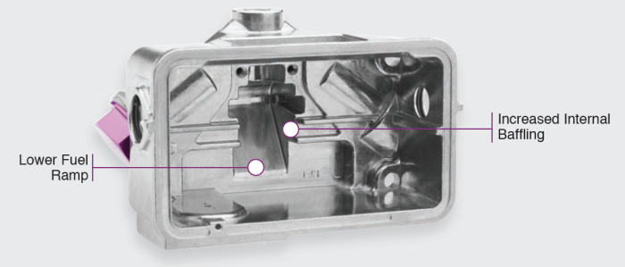 Completely redesigned in 2022! PROFORM Next Gen Fuel Bowls have two big improvements: significant internal baffling for increased fuel control, and a lower fuel ramp to prevent slosh. We're always coming up with new ways to give you a leg up at the track. Lightweight aluminum center-hung fuel bowls with sight glass windows for easy visual float adjustment. The kit comes with two (2) fuel bowls, two (2) gaskets, and anodized aluminum 5/8" x 18 inverted flare fuel inlets. Fits PROFORM, Quick Fuel, and Holley Double-Pumper carburetors.