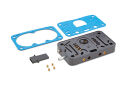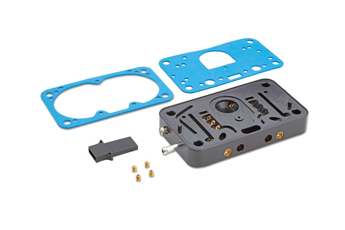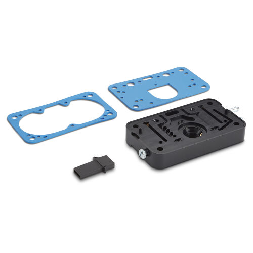 Primary metering block for all 2300, 4150, 4160 models except carburetors with an accelerator pump transfer tube or reverse idle mixture system. Uses standard fuel bowl and metering block gaskets. Timed spark or ported vacuum tube in original location. Improved throttle response over stock universal performance carburetor metering block. Black anodized finish.