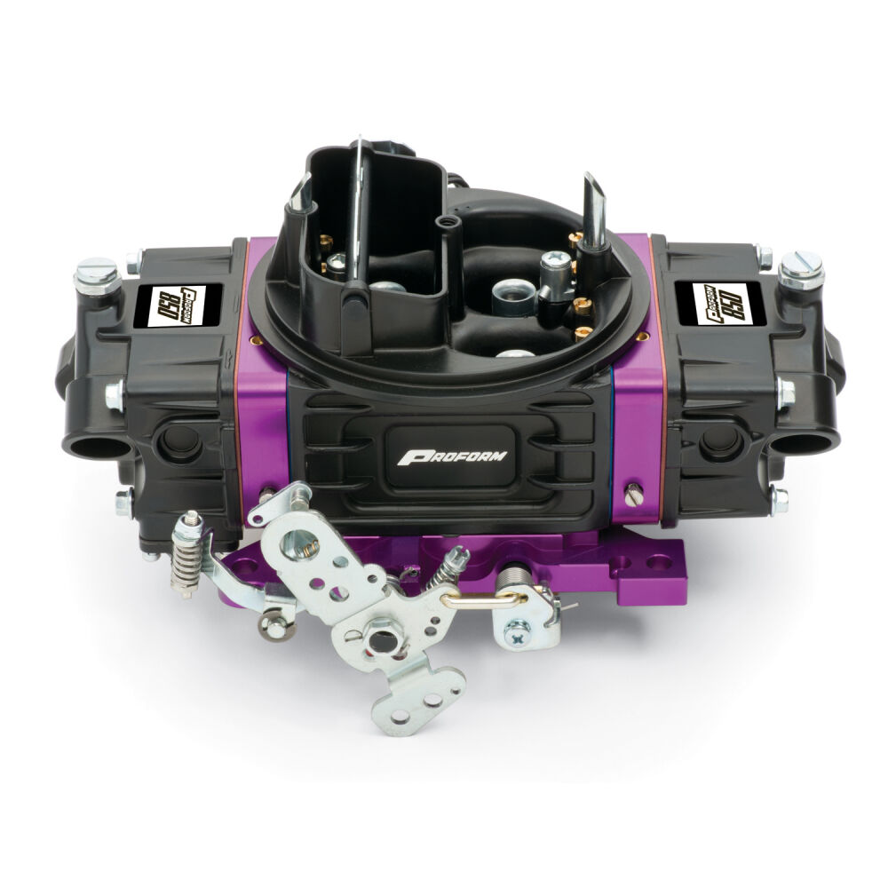 Discontinued. PROFORM's Black Street Series Carburetors include a Black Diamond® coating for enhanced fuel cooling. Each carburetor is hand assembled and tested in the U.S.A. a ton of premium features are included with this ready-to-run carburetor: billet aluminum and cast aluminum components, fully adjustable air and fuel metering system, and refined tuning features that optimize fuel induction. Each street carburetor features billet metering blocks with a street performance calibration developed for today's high performance engines. Four corner idle is standard on these mechanical secondary carburetors, which helps fine tune the idle to aggressive camshaft profiles. Changeable idle feed restrictions expand the idle adjustment capabilities. Fine tuning is accomplished by simply changing air bleeds not opening calibration restrictions with a drill bit. Like all PROFORM carburetors, service parts are readily available however, should you not find PROFORM service parts, our carburetors are compatible with any modular carburetor service parts available at a local parts store or retail outlet. The billet throttle body for superior strength, coupled with precision throttle shafts to ensure long term performance. All PROFORM carburetors have easy access adjustable secondary air flow. Others' carburetors may require special tools or removal of the carburetor to accomplish this simple adjustment. Complete with high quality, light weight die-cast aluminum fuel bowls with fuel level windows for quick reference. Float level changes do not require removal of a sight plug with the risk of fuel spilling. Bowls come equipped with 3/8in inverted flare fuel inlet fittings and will accept all conventional dual feed fuel lines compatible with other four barrel carburetors.