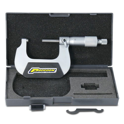 Discontinued. PROFORM heavy-duty micrometer sets for all the popular applications and finally affordable for the weekend racer. PROFORM micrometers feature quick-lock levers, ratchet stops, carbide measuring tips, calibration accessories, adjuster wrenches, and each PROFORM micrometer comes in a handy and durable carrying case.
