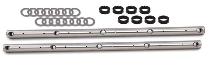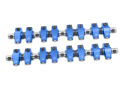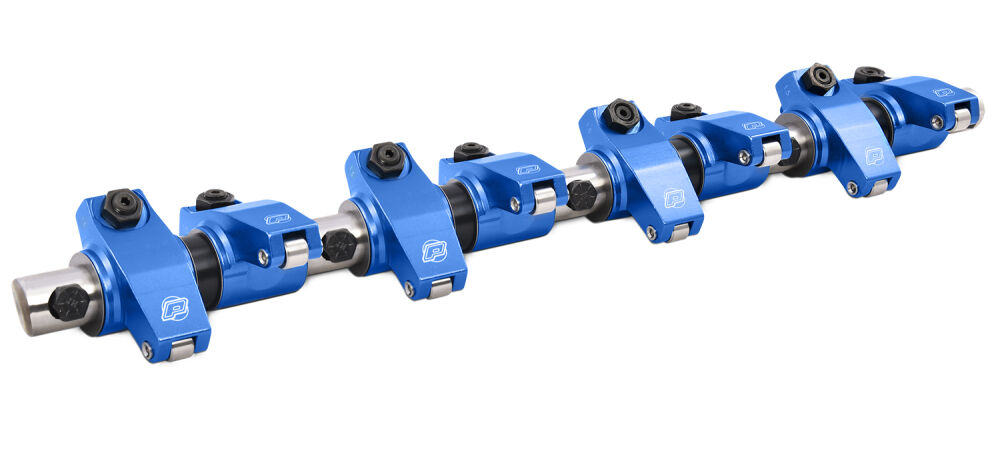 Newly Designed Super Street Series Rocker Arm System! Rid your engine of internal friction with roller-tipped rocker arms. The race-proven roller tip not only unleashes horsepower, it also lengthens valve train component life and reduces wear and tear on valve stem tips. Precision machined to insure consistency and ratio accuracy. Each rocker includes a bronze bushing, and a newly designed shaft-to-rocker self-oiling system. 16 blue anodized aluminum roller rockers with laser-etching, hardened shaft, and hardware included. Please Note, mounting hardware is not included. The kit is designed to use your stock bolts and tabs to attach the shaft to your cylinder head.