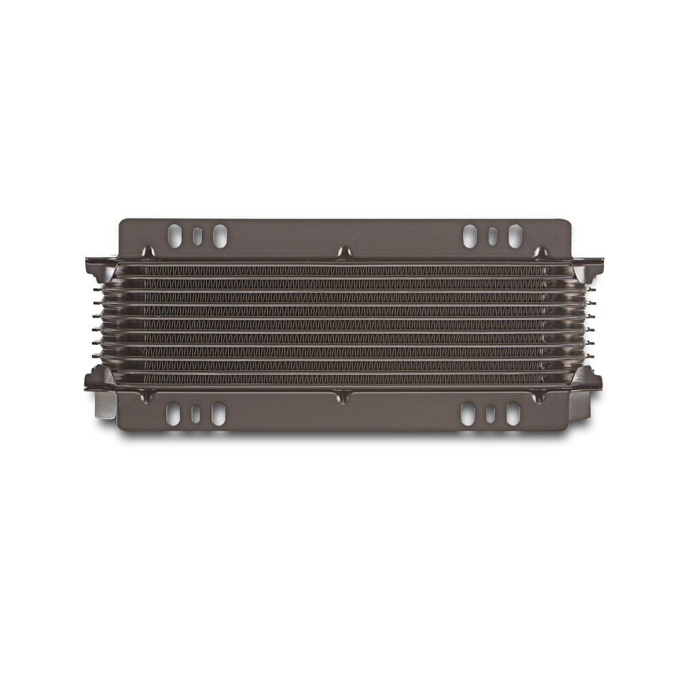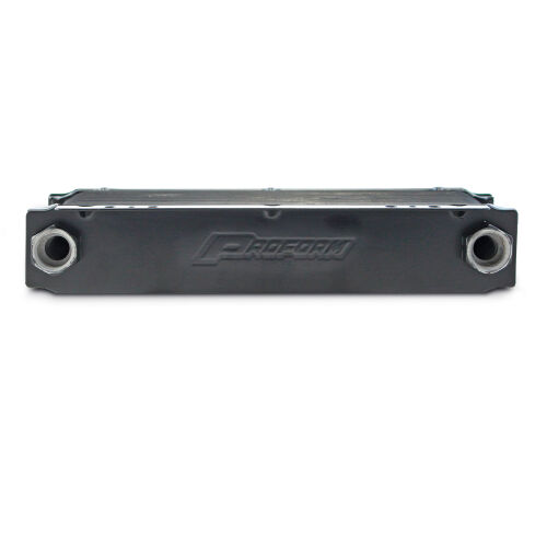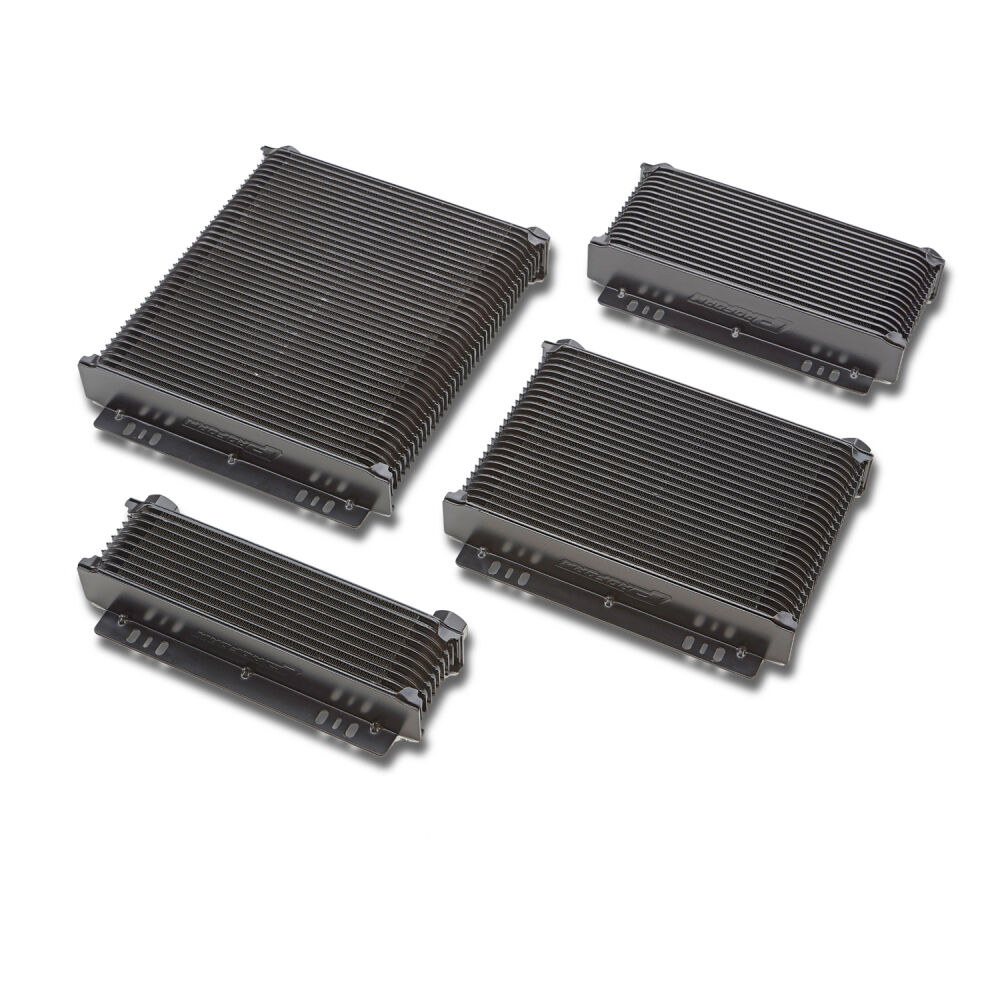 The Tundra Series Universal 10-Plate Transmission Oil Cooler keeps oil temperatures right where they need to be for optimum performance. Featuring a stacked plate and fin design, which is more efficient than same sized tube and fin coolers, they are constructed with durable aluminum, and powdercoated with a black finish to withstands corrosion. Uniquely engineered louvered fins provide maximum cooling surface area in a compact 2-inch thick, 11.5-inch wide footprint, while minimizing negative air flow resistance for some significant cooling potential! They are finished with the State-of-the-Art PROFORM brazing process that protects from leaks and cracks. But just to make sure, we pressure test them for deformities at 175PSI, while complete failure is not reached until 600PSI. To ensure no to make sure no bubbles or mini-leaks are present, we further underwater test at 80PSI. Installation is easily configurable to most setups with multiple mounting points to choose from on the flush mounting plates.