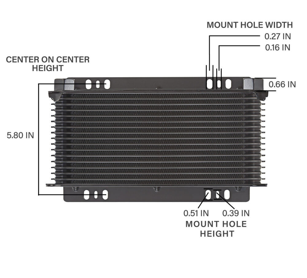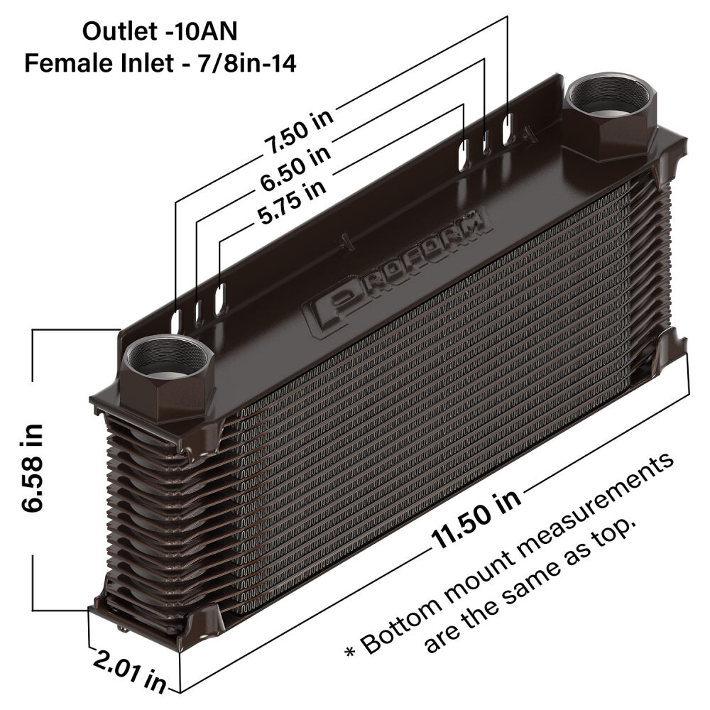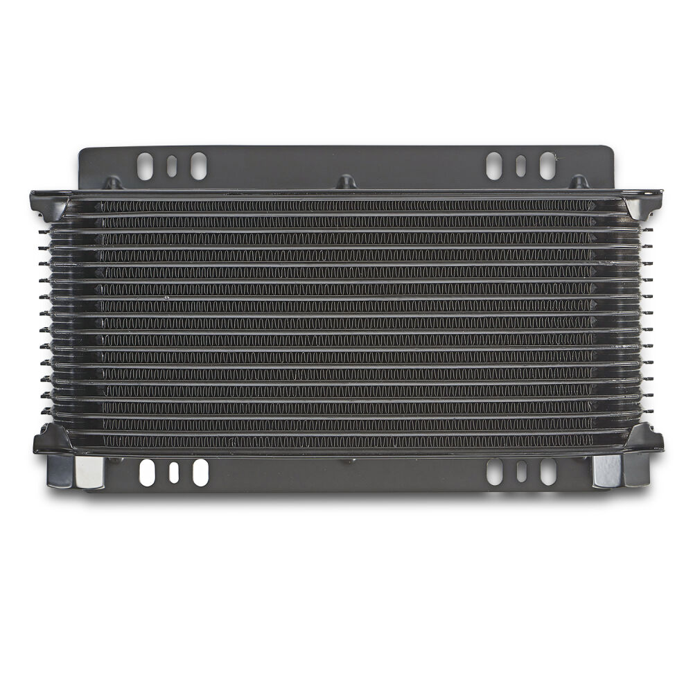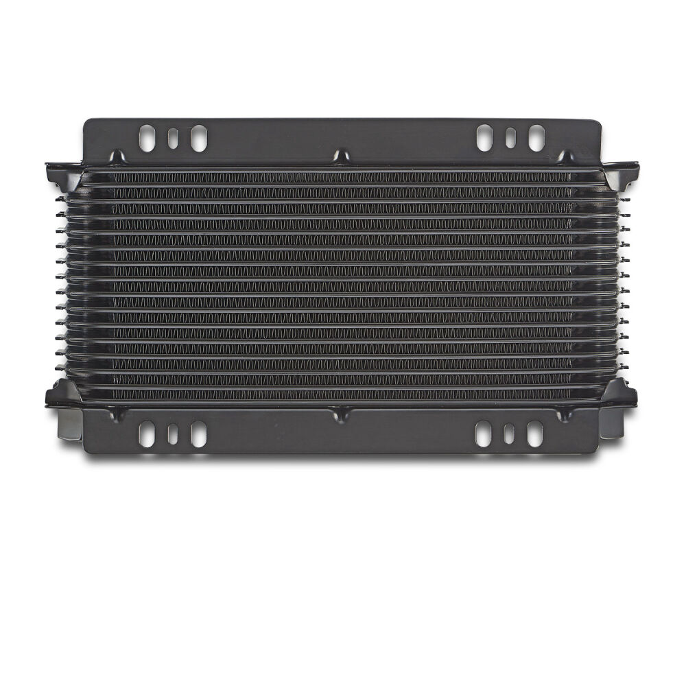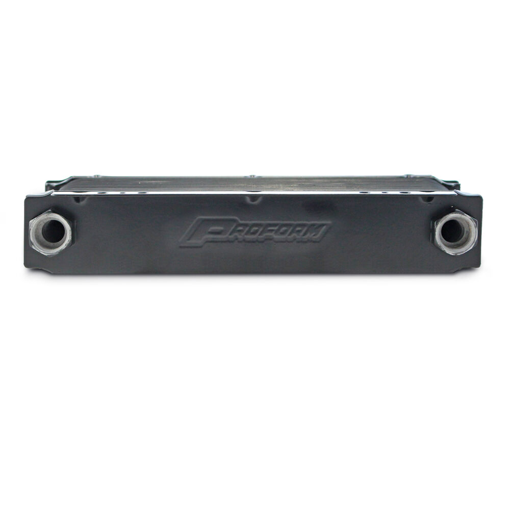 The Tundra Series Universal 16-Plate Transmission Oil Cooler keeps oil temperatures cool for optimum performance, and engine life. Featuring the more efficient stacked plate and fin design, these aluminum construction coolers are finished with the state-of-the-art PROFORM brazing process that protects from leaks and cracks and powdercoated with a black finish to withstands corrosion. Uniquely engineered louvered fins provide maximum cooling surface area, in a compact 2-inch thick, 11.5-inch wide footprint, while minimizing negative air flow resistance for some significant cooling potential! multiple mounting points on the flush mounting plates, make installation easily configurable to most setups. To ensure the quality that has come to be expected with PROFORM, the coolers are pressurized to 175PSI, and checked for deformities (complete failure is not reached until 600PSI), and further underwater tested at 80PSI, making sure no bubbles or mini-leaks are present.