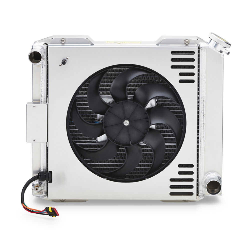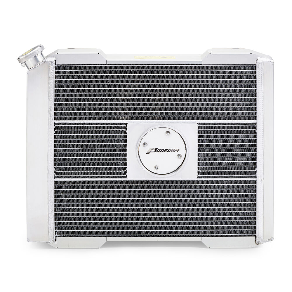 What did we do? With revolutionary engineering we flipped the motor around so instead of hanging on the outside, it's integrated directly into a uniquely designed core made with state-of-the-art brazing technology (with no meaningful cooling compromise). The core itself is a hybrid combination of traditional duel 1" tubes, and full core width extruded tubes. Combine this with a high-performance fan blade inserted into a smooth aluminum shroud, the result is the industry's thinnest, most streamlined look. Every PROFORM Slim-Fit Radiator includes a shroud, electric fan with adjustable thermostat, wiring harness, and radiator cap.