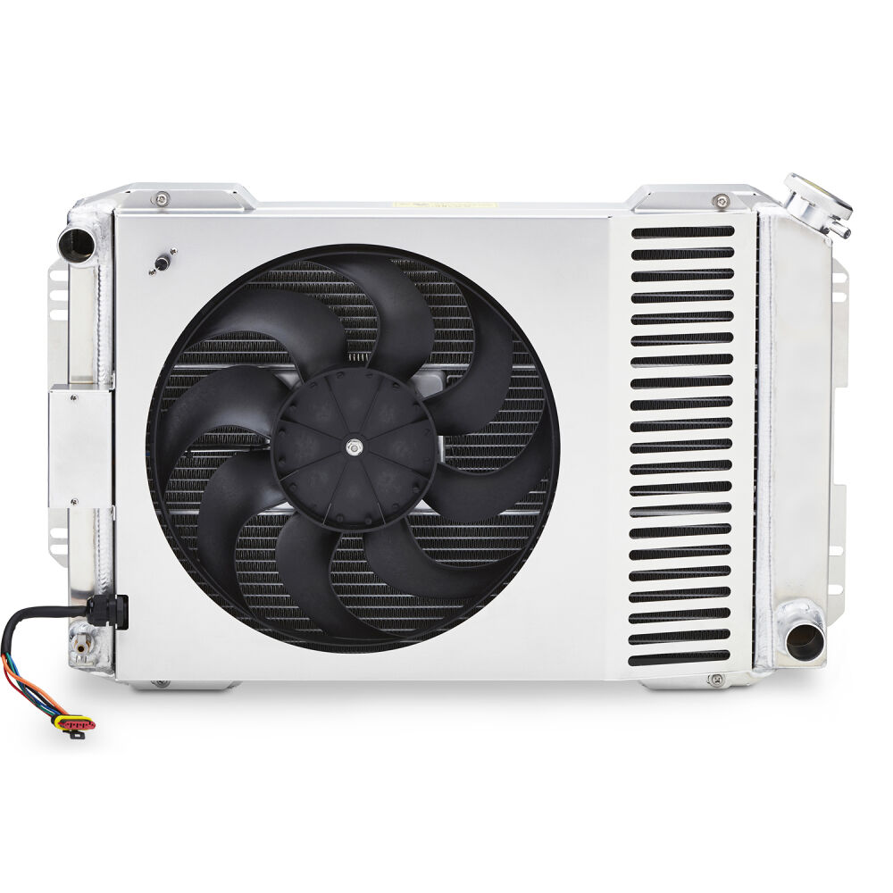 What did we do? With revolutionary engineering we flipped the motor around so instead of hanging on the outside, it's integrated directly into a uniquely designed core made with state-of-the-art brazing technology (with no meaningful cooling compromise). The core itself is a hybrid combination of traditional duel 1" tubes, and full core width extruded tubes. Combine this with a high-performance fan blade inserted into a smooth aluminum shroud, the result is the industry's thinnest, most streamlined look. Every PROFORM Slim-Fit Radiator includes a shroud, electric fan with adjustable thermostat, wiring harness, and radiator cap.
