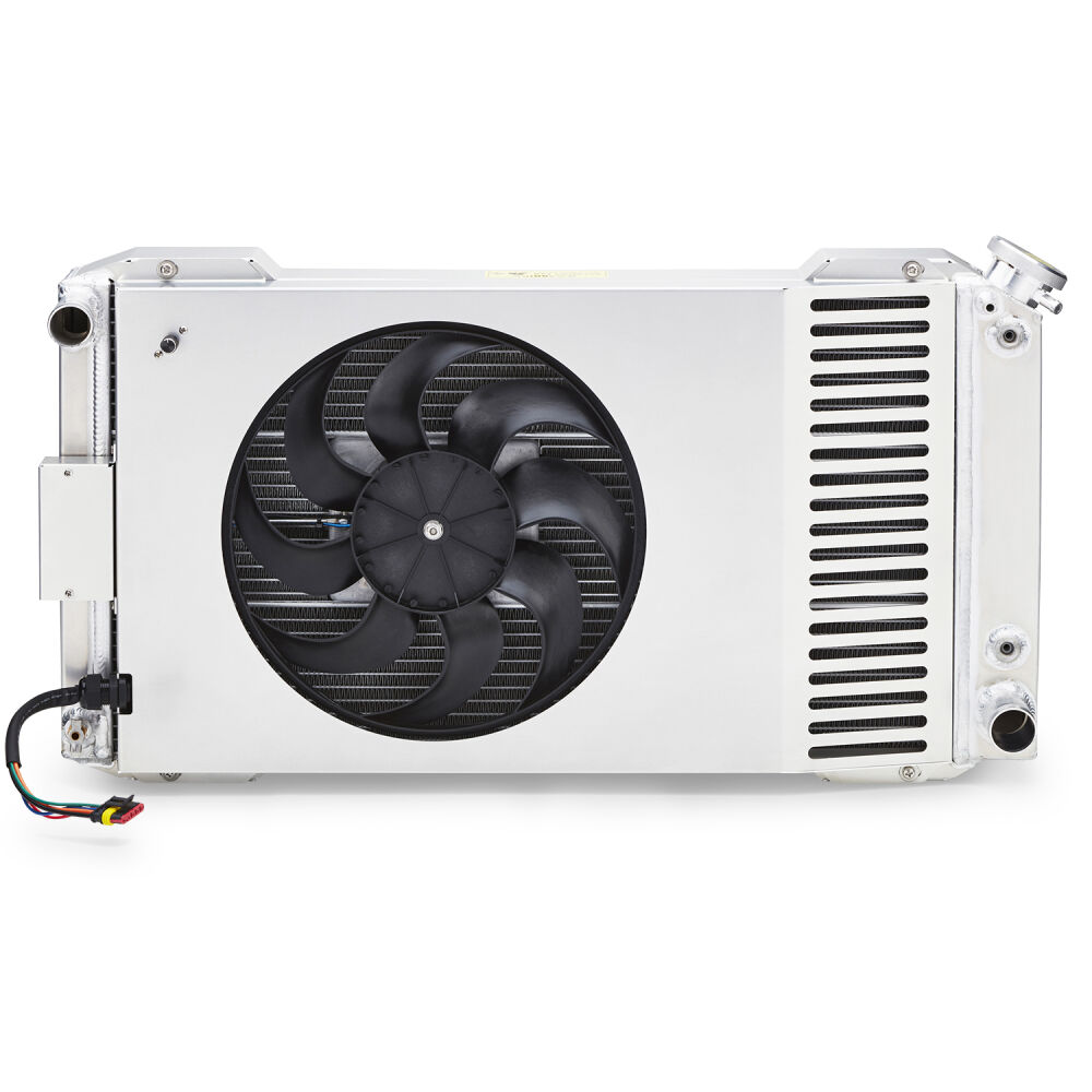 What did we do? With revolutionary engineering we flipped the motor around so instead of hanging on the outside, it's integrated directly into a uniquely designed core made with state-of-the-art brazing technology (with no meaningful cooling compromise). The core itself is a hybrid combination of traditional duel 1" tubes, and full core width extruded tubes. Combine this with a high-performance fan blade inserted into a smooth aluminum shroud, the result is the industry's thinnest, most streamlined look. Every PROFORM Slim-Fit Radiator includes a shroud, electric fan with adjustable thermostat, wiring harness, and radiator cap.